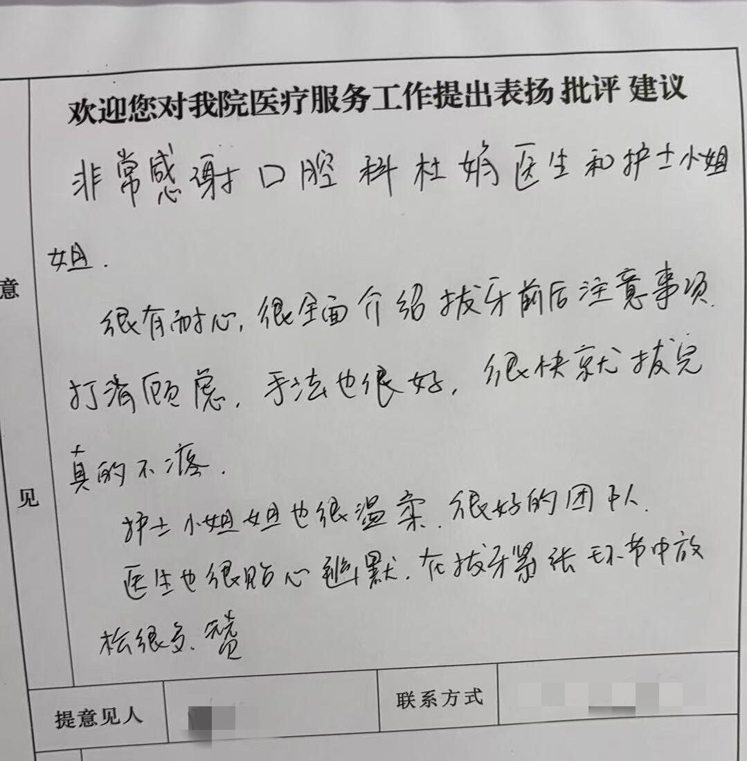 2025年3月口腔科表扬信