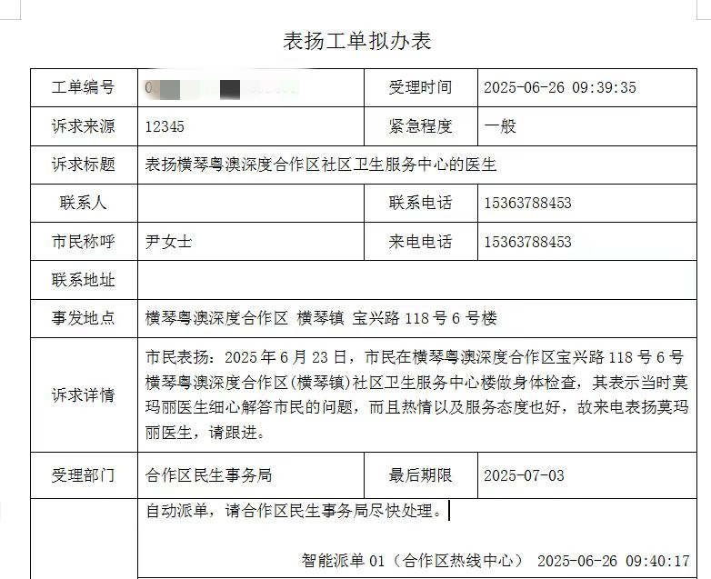 2025年6月社区服务中心表扬信