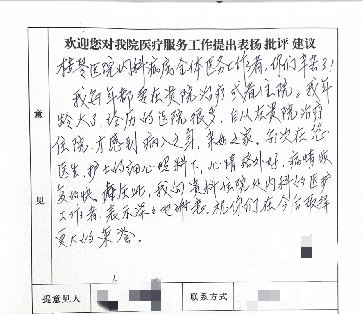 2025年6月综合内科表扬信