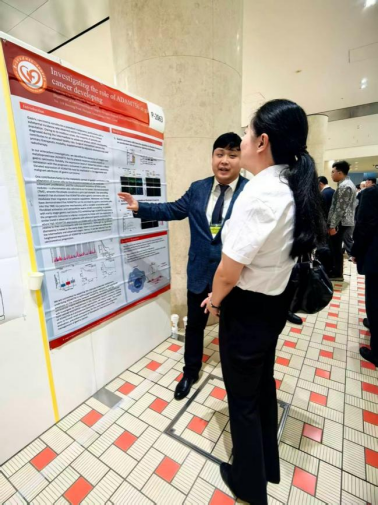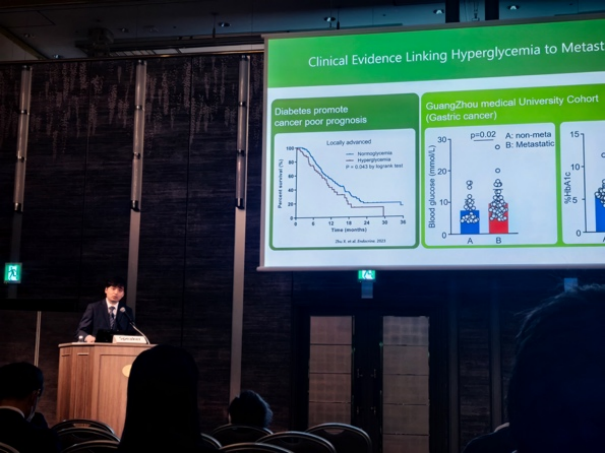 我院综合外科的付凌峰医师(现外派至日本癌症研究所学习),受邀在大会主会场作主题报告,题目为《代谢疾病驱动的转移前生态位形成机制》。报告系统阐述了代谢异常通过细胞外囊泡介导肿瘤远端器官微环境重塑、促进转移形成的最新研究进展,引发现场热烈反响,为国际同行了解我国肿瘤微环境领域研究提供新视角。