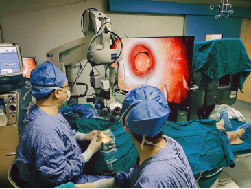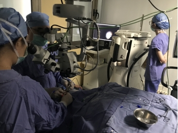 在最能体现眼科实力和高技术水平的微创眼底病手术方面,我们也呈现高速发展的态势。我科于2009年已开展眼底手术,能够开展复发性视网膜脱离、复杂性眼外伤、增殖性糖尿病视网膜病变、高度近视黄斑裂孔、儿童青少年视网膜脱离等几乎所有疑难玻璃体视网膜疾病的手术,广泛得到眼科同行的认可。目前科室影响力已覆盖周边8个省,不少疑难眼底疾病的患者经同行介绍至我院眼科进行进一步诊治。