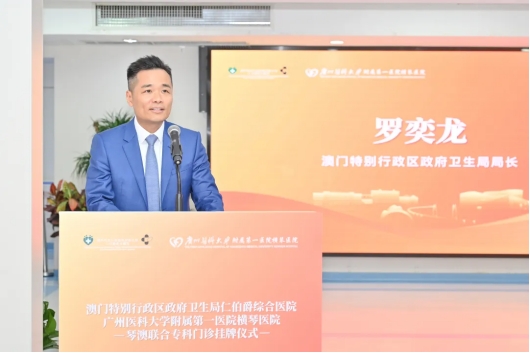 罗奕龙局长在致辞中表示,澳门特区政府高度重视医疗卫生发展,致力于通过与区域内一流医院合作,为居民提供更优质的医疗保障。他指出,仁伯爵综合医院与广医一院横琴医院共同设立联合专科门诊,是澳琴医疗资源整合的重要里程碑,也是落实澳琴一体化及粤港澳大湾区战略的体现,将为在合作区居住、工作的澳门居民带来更便捷优质的医疗服务。该门诊将以肺科及感染科为试点,建立两院共同评估机制,接诊经仁伯爵综合医院转介的患者,借此充分发挥广医一院横琴医院的专科优势,减轻患者负担、缩短轮候时间,并搭建两院医生常态化交流平台,为两地青年医生搭建交流学习平台。