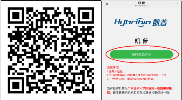 ➤ HPV检查结果查询方式:扫描下方二维码查询,点击报告查询,输入登记预留手机号和验证码登录查询。(两周内出结果)